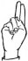 На ћирилици написано ЛАБУДА ТОПАЛОВИЋ састоји се из 15 слова [?]. Исписано ћириличном једноручном азбуком за глувонеме:
